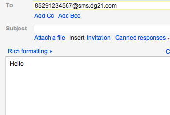 Email2SMS 電郵轉發短訊服務是一項讓您可以使用您任何慣用的電郵軟件式網頁電郵服務直接發送 短訊 或 傳真,例如: Outlook,Apple Mail, Gmail, Yahoo Mail, MSN Hotmail...